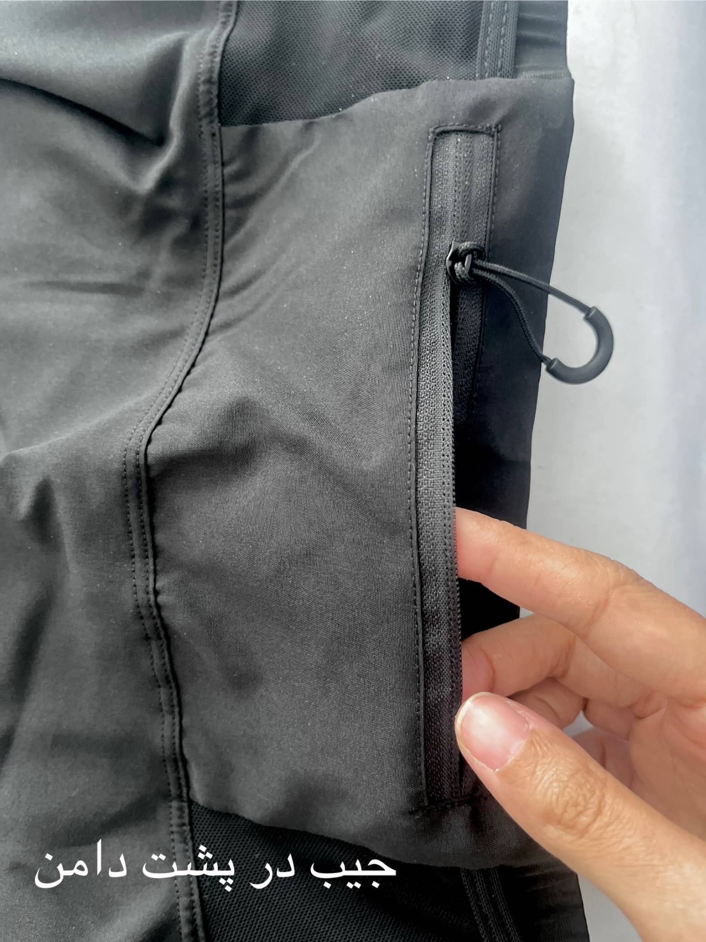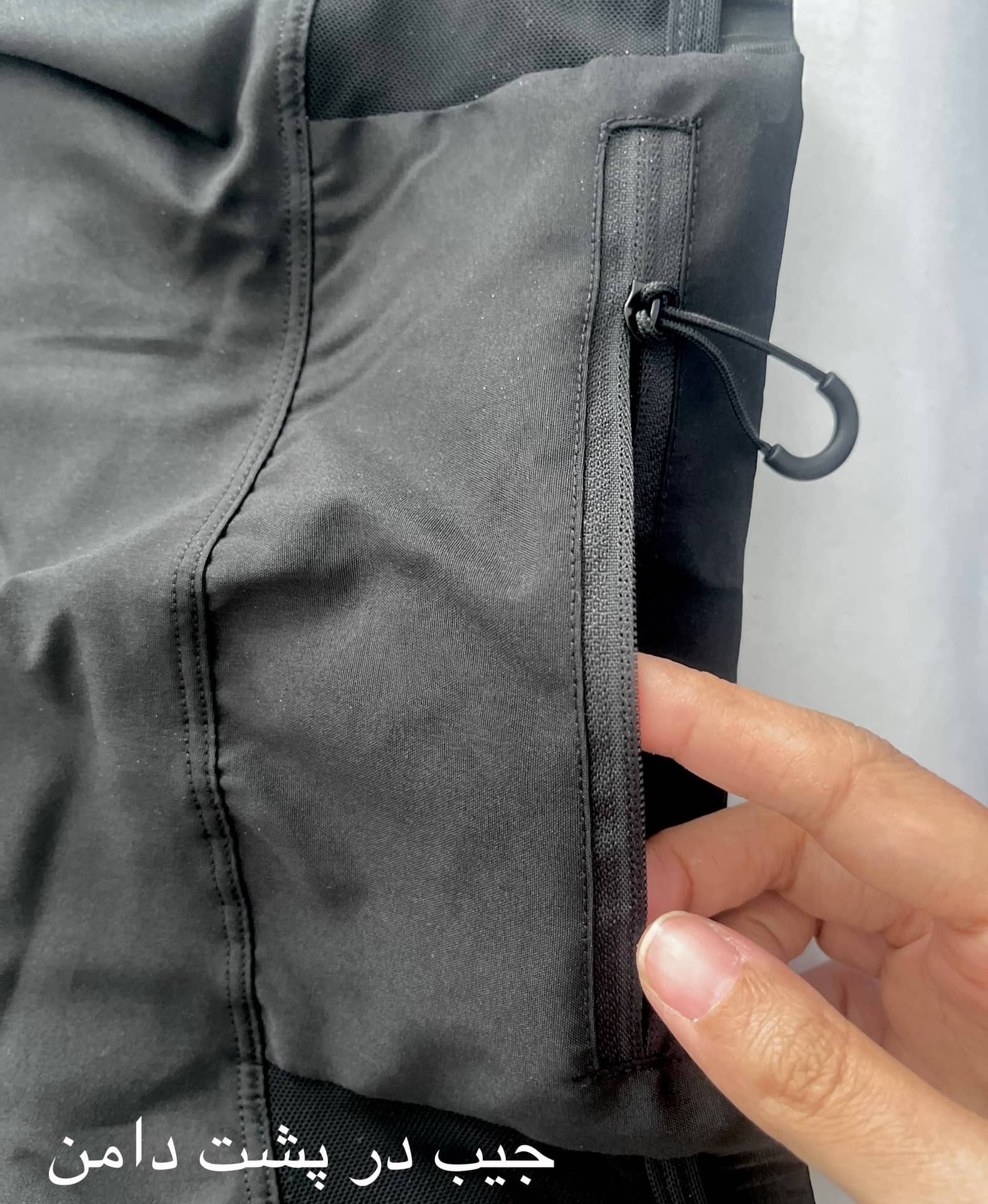 زیر این دامن شلوارک هست، یک جیب روی کمر پشت دامن داره که میتونید وسیله کوچیک داخلش بذارید و با زیپ باز و بسته میشه، یک کش تنظیم داره برای محکم تر کردنش دور کمرتون.