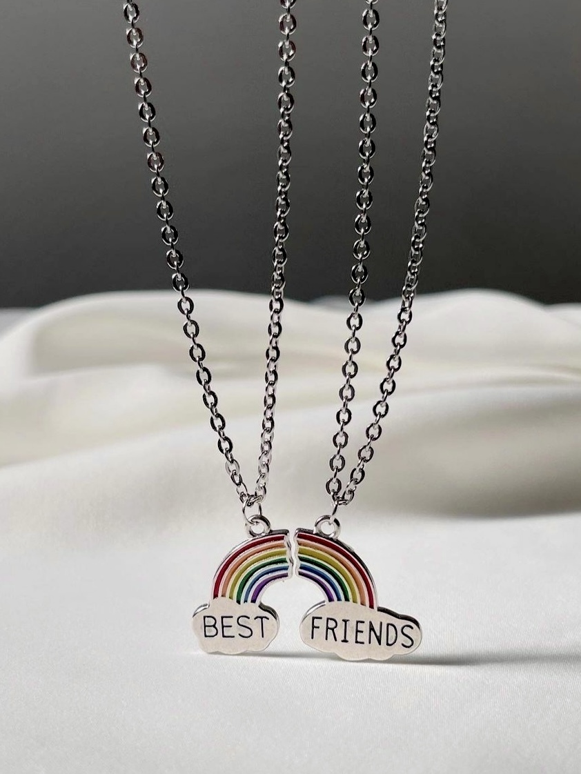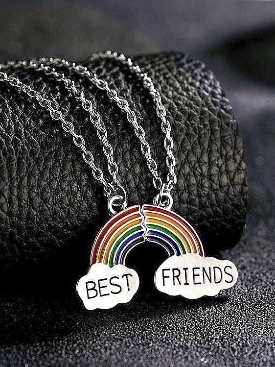 این گردنبند بصورت ست دو عددی، با طرح رنگین کمان و نوشته ی Best Frineds (به معنی بهترین دوست ها) هست.