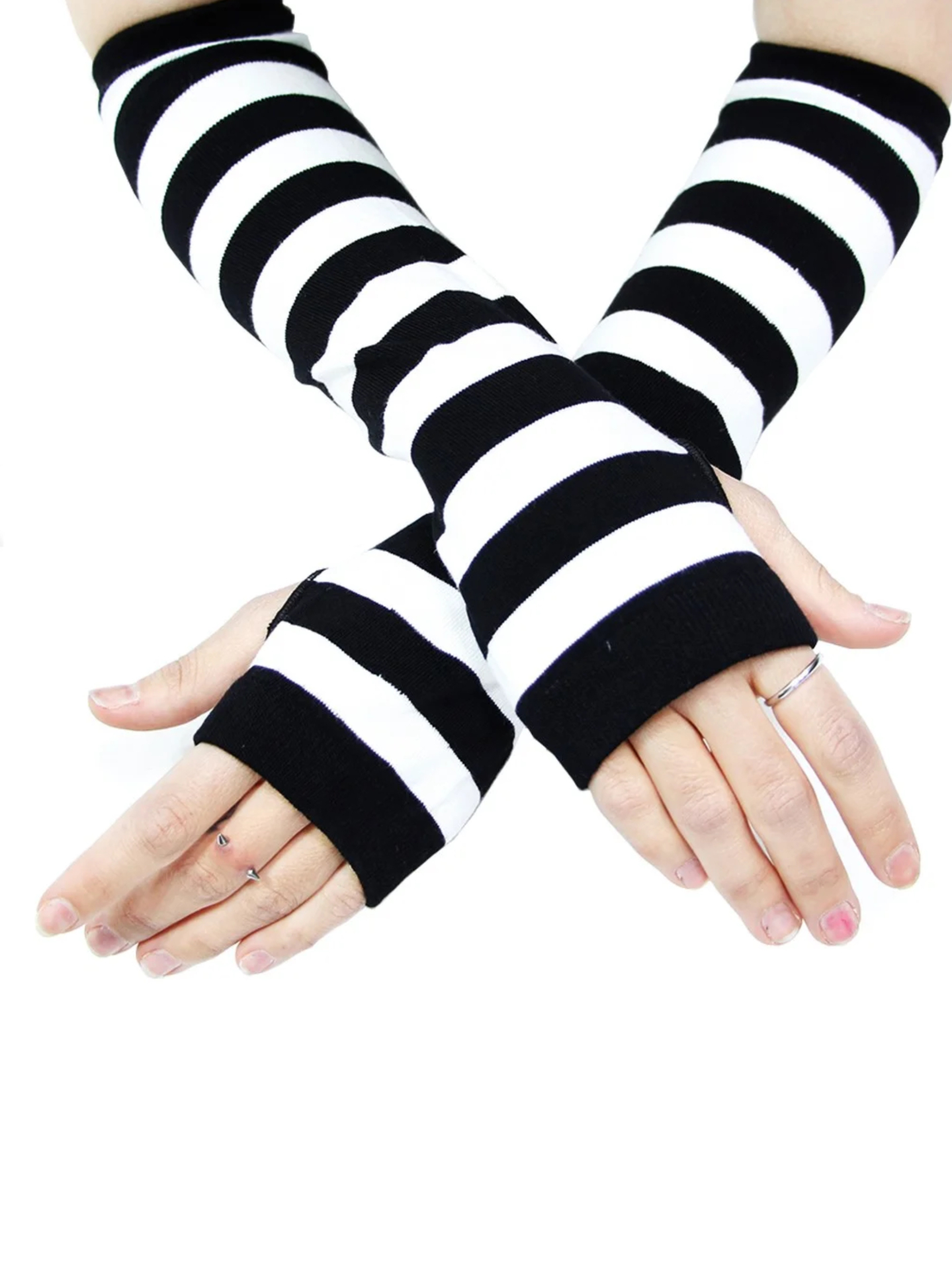 از جمله آیتم های جذاب و یونیسکس واسه استایل های گرانج، این ساقدست های راه راه سیاه و سفید هست که بخاطر خنثی بودن رنگش با هررنگی استایل میشه ^-^