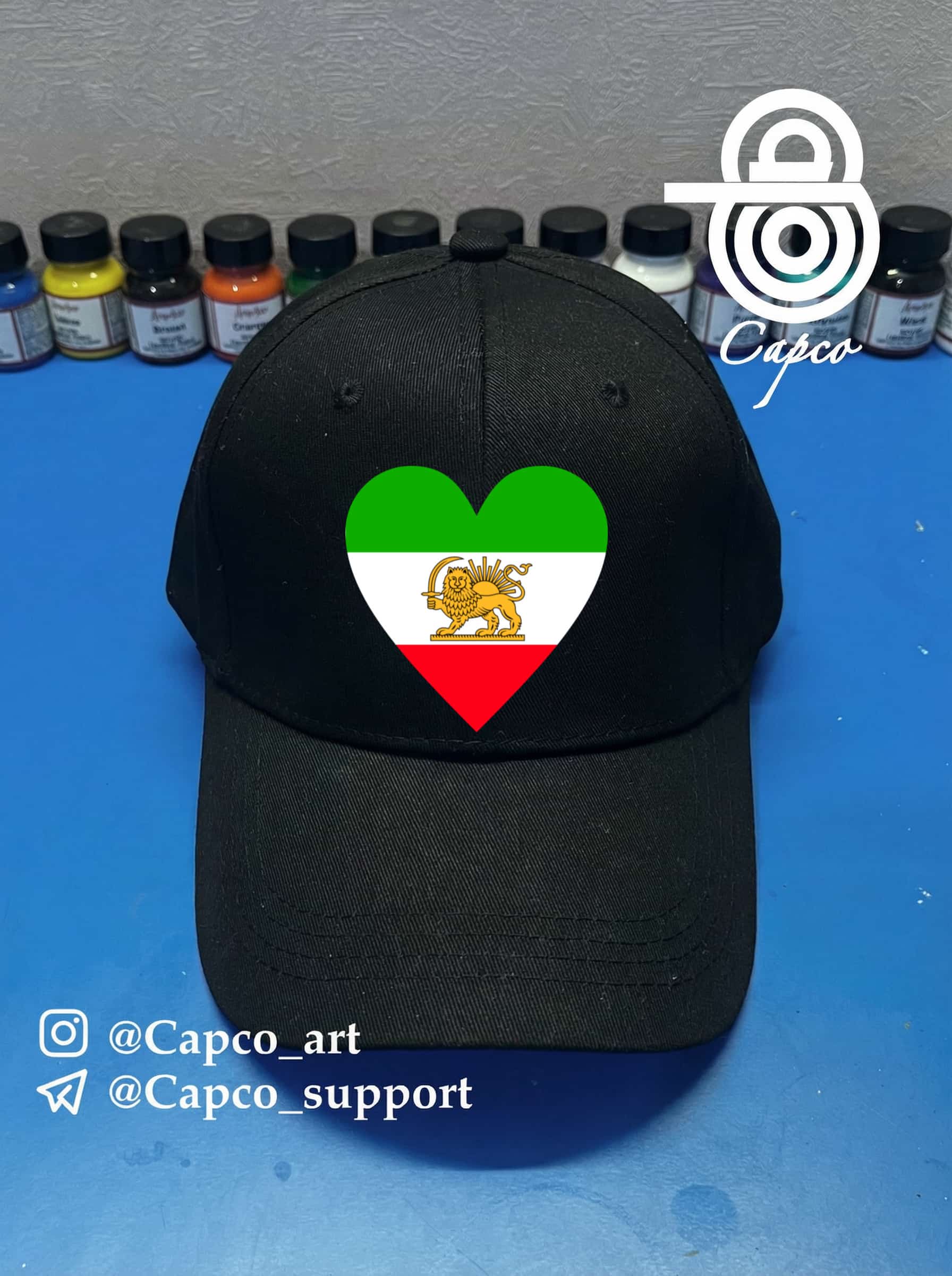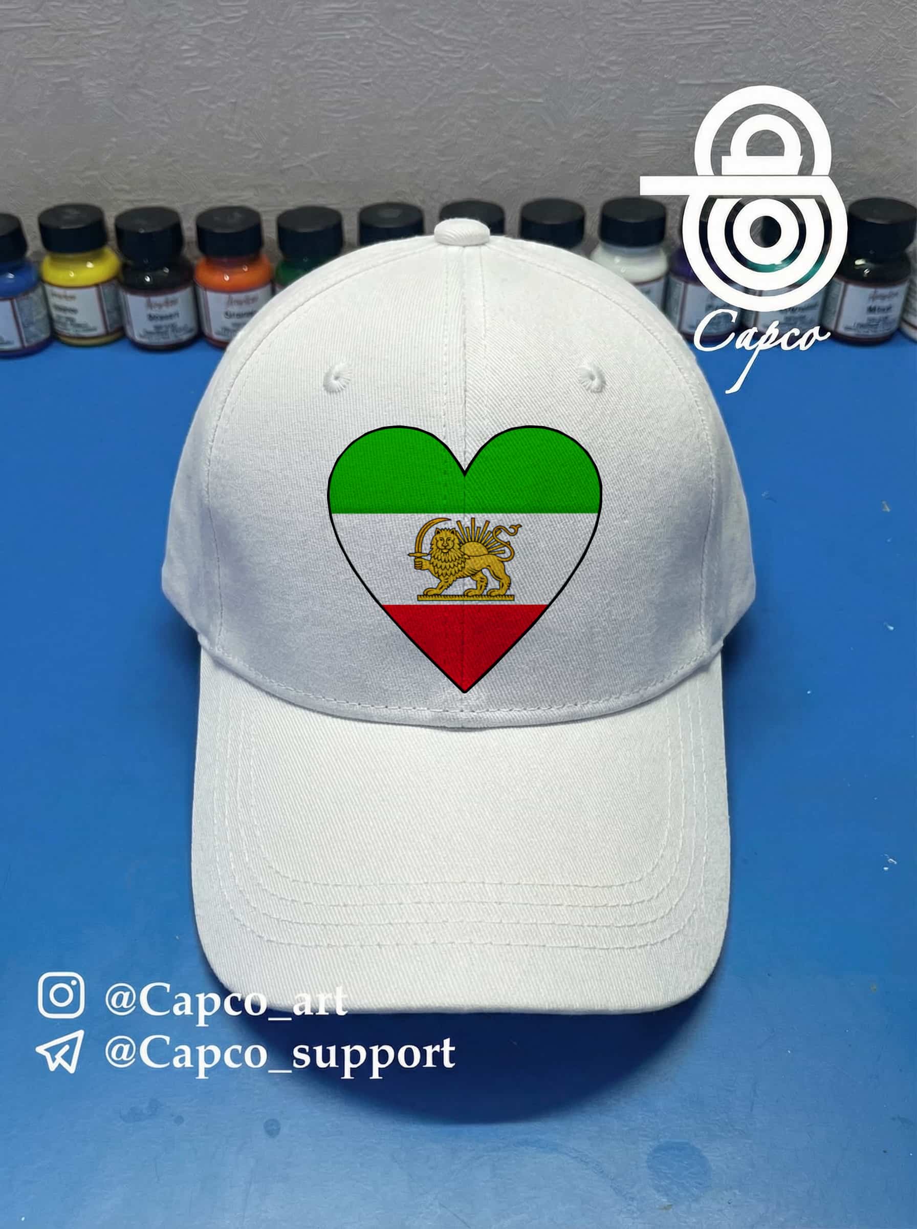 کلاه کپ مدل بیسبالی با طراحی پرچم ایران با نماد شیر و خورشید در قلب❤️