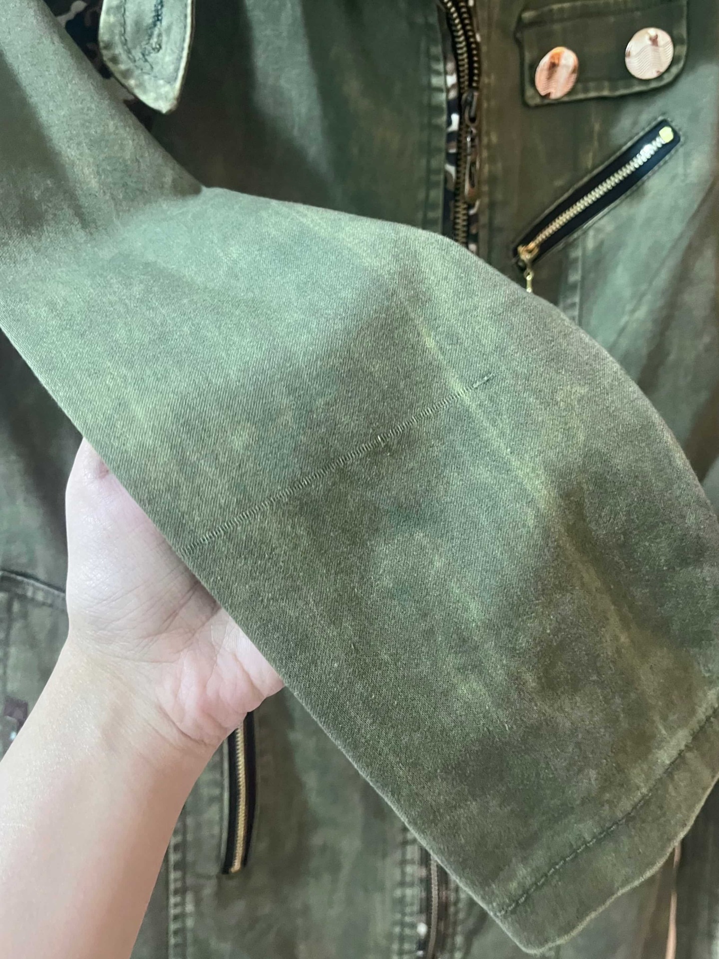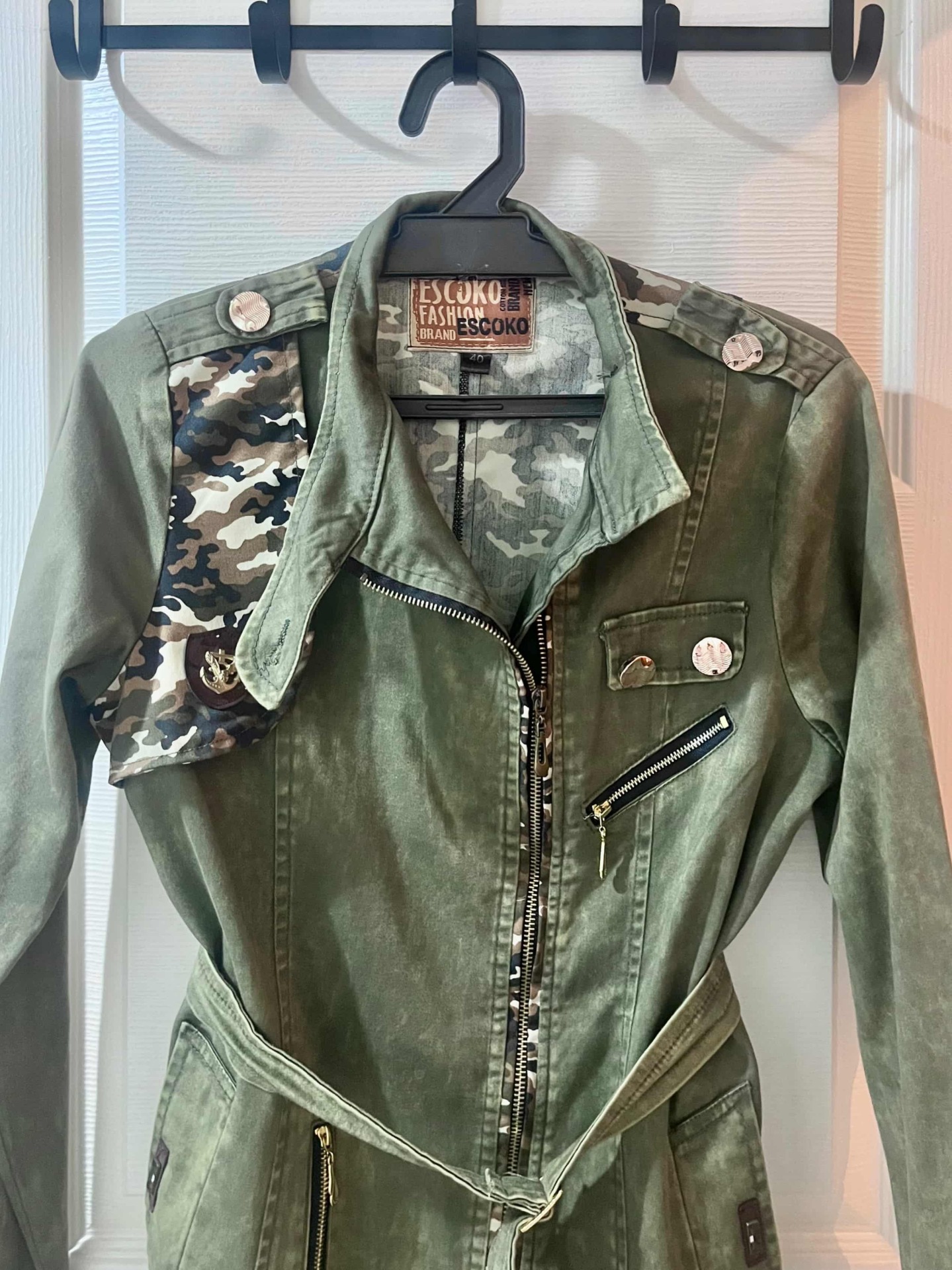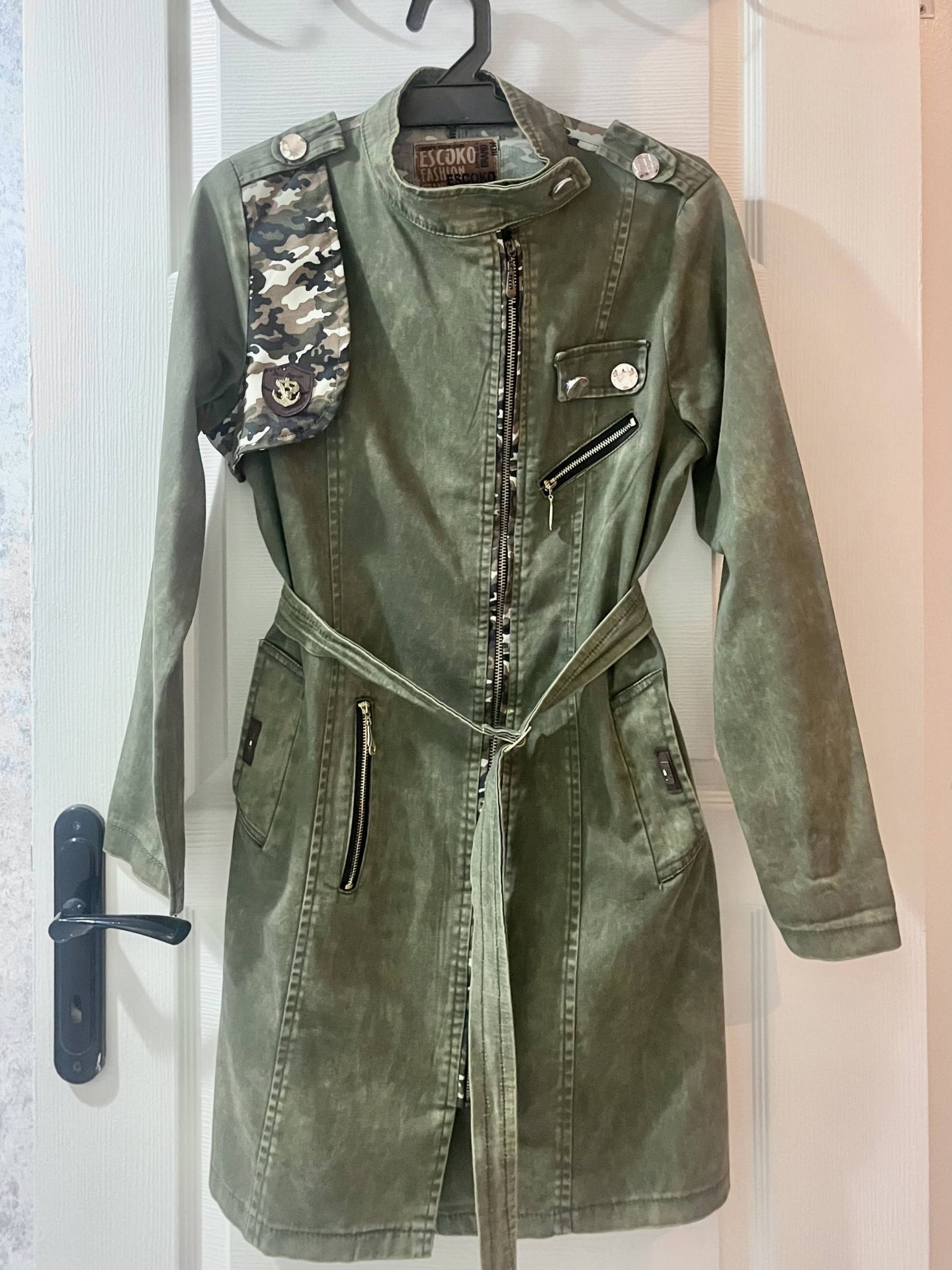 این لباس یک کت بلند مناسب چهارفصل هست با جنس کتان مشابه لی سنگشور و رنگ سبز ارتشی و پترن ارتشی مناسب استایل های گرانج که میتونید با آیتم های سفید ، مشکی یا سبز ست کنید و یک استایل جذاب بسازید ^-^